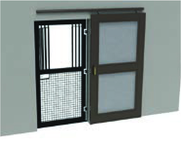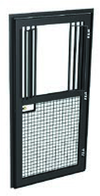 Stall ventilated grid swinging pre hung door in 2″ x 2″ steel frame 4′ x 8′ 2″ x 2″ 5/16″ rod mesh lower with shutter door upper