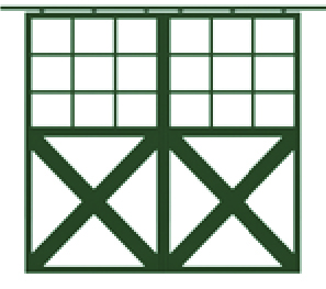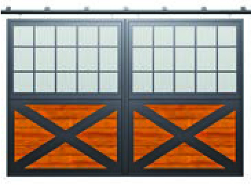 9 pane grid upper cross buck wood filled lower with tempered glass